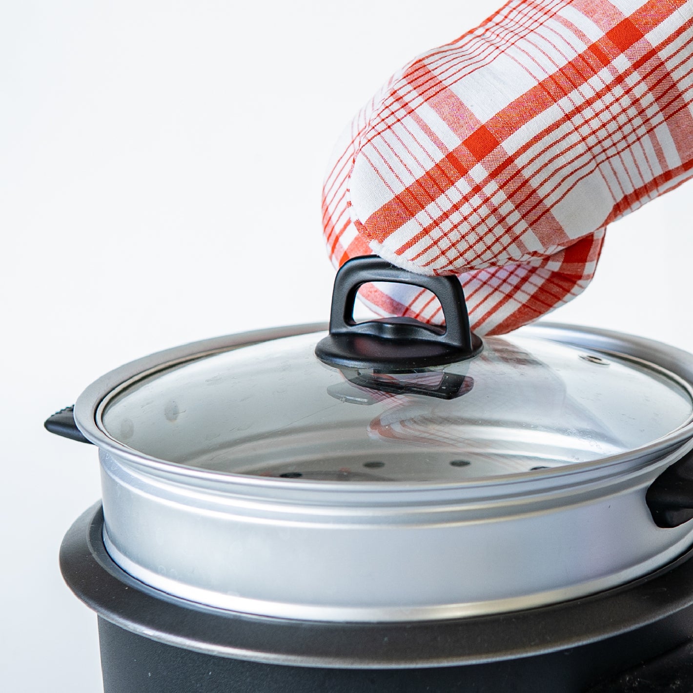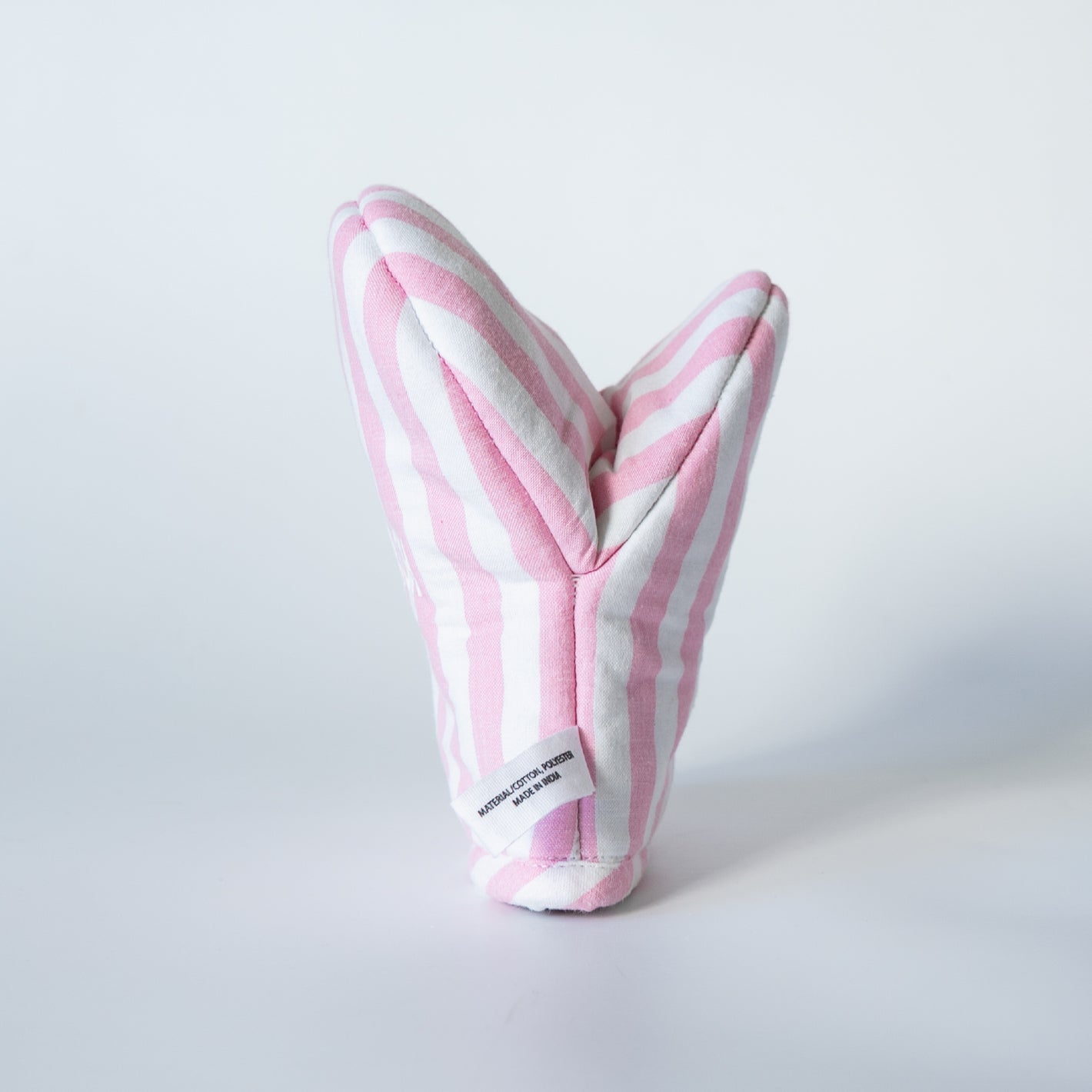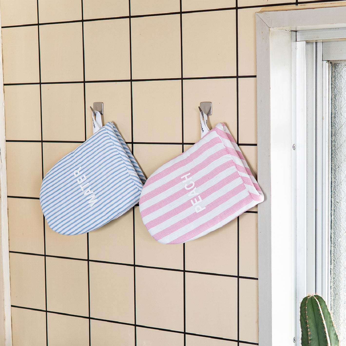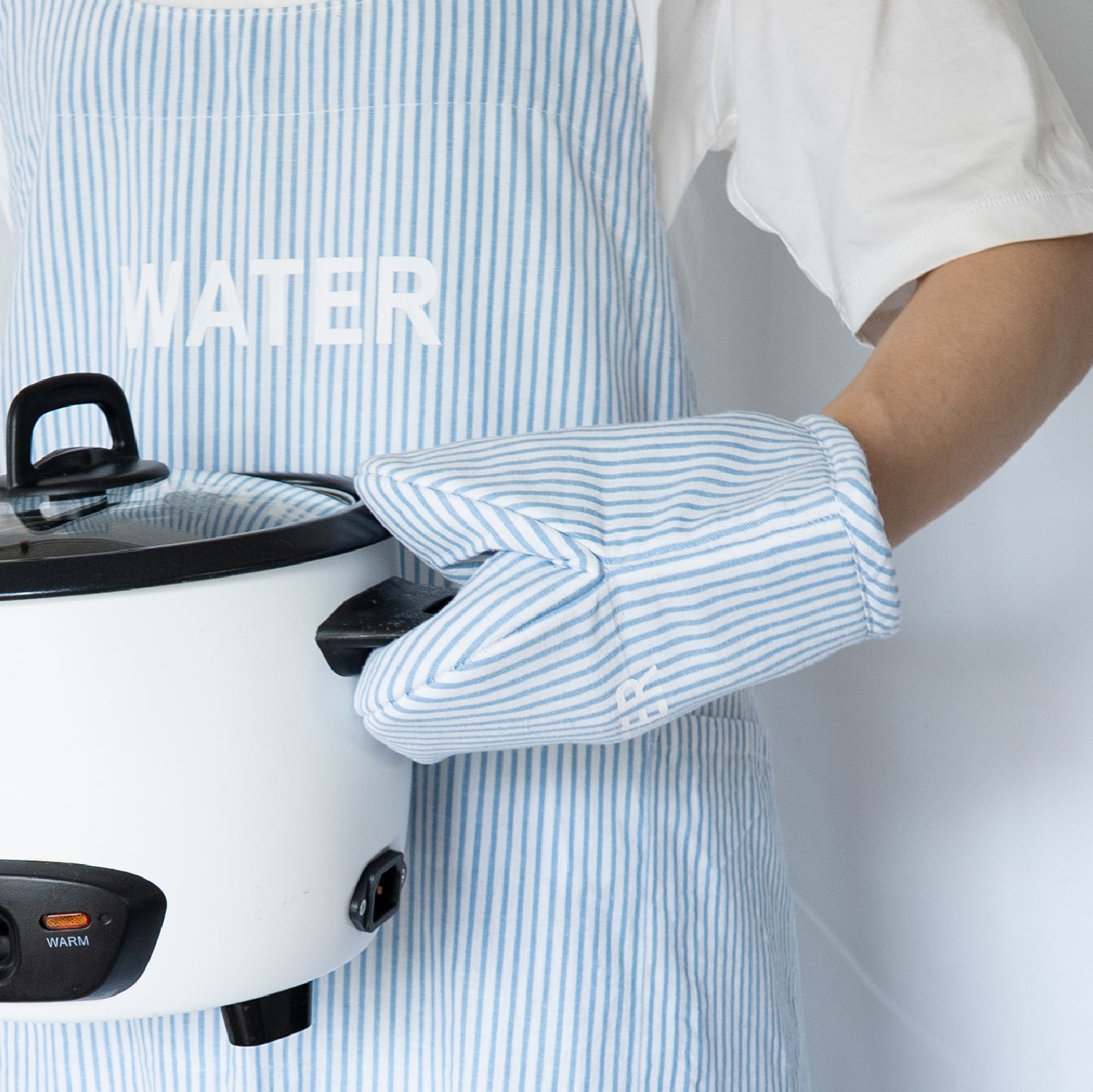 500gsmの高密度芯材を使用し、頼りがいのある厚みに仕上げました。ただ厚いだけではなく、親指のラインに沿った自然なカーブを施すことで、指先の感覚を活かしたスムーズな操作性で、鍋の取っ手や天板の縁を、狙い通りにしっかりとホールドできます。洗いざらしのインド綿にポップなプリントを載せたデザインは、実力派の道具でありながら、キッチンに遊び心をプラスしてくれます。