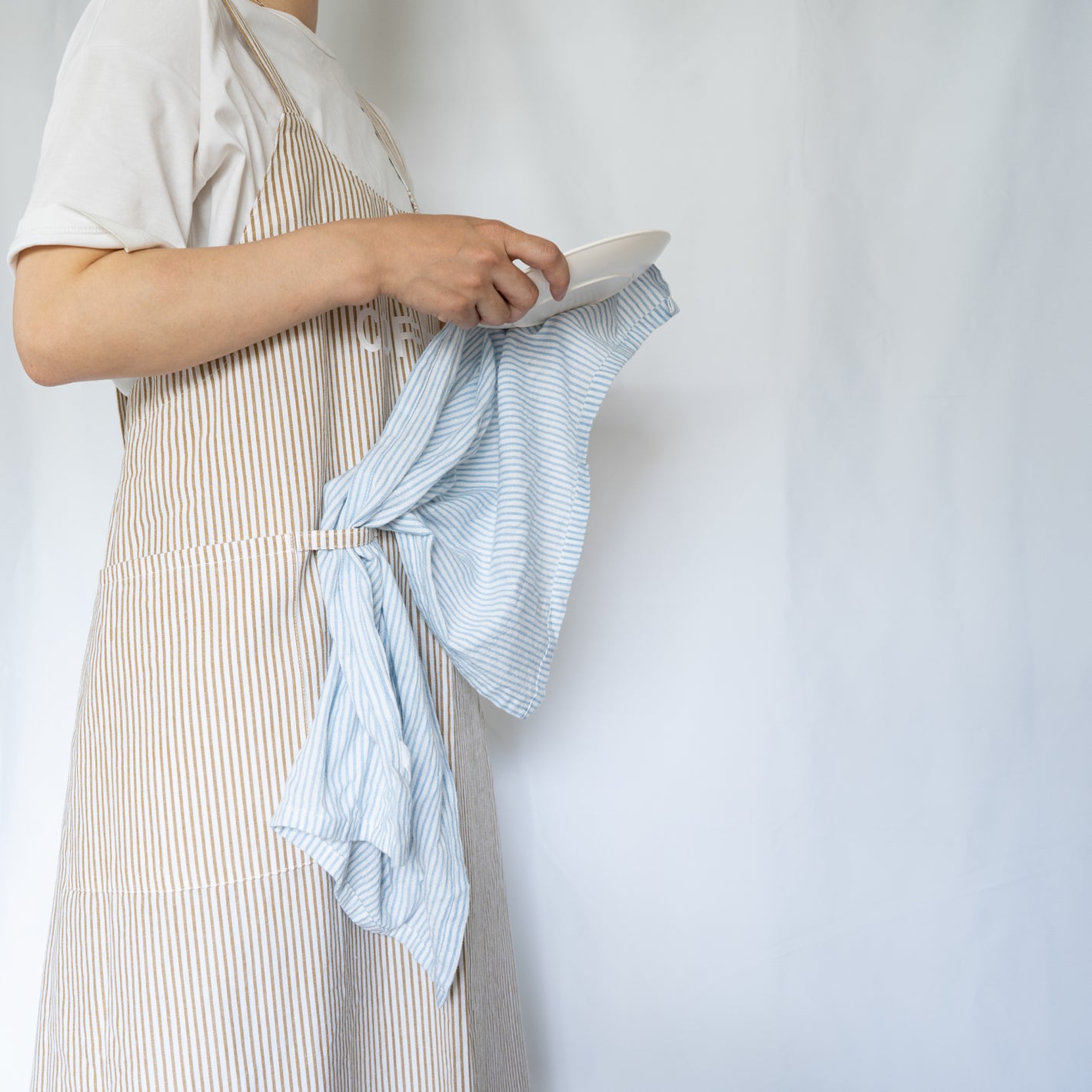 腰元にキッチンクロスを掛けておける実用的なループ。エプロンと同様、使いたい時にすぐ手が届くフルサイズエプロンと共通の仕様です。