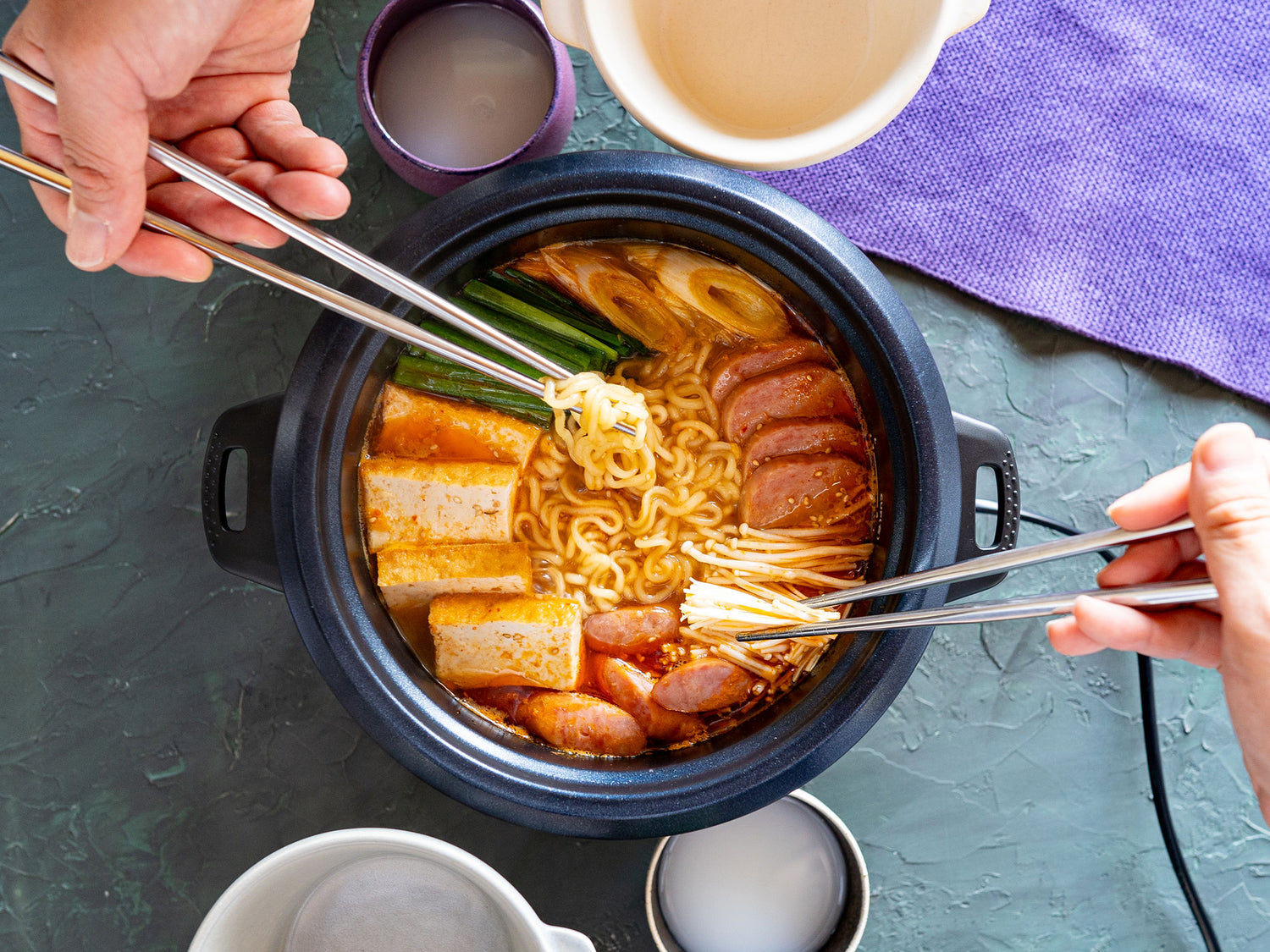 煮る、炊く、蒸す、温めるをボタン一つで。超簡単な電気鍋。