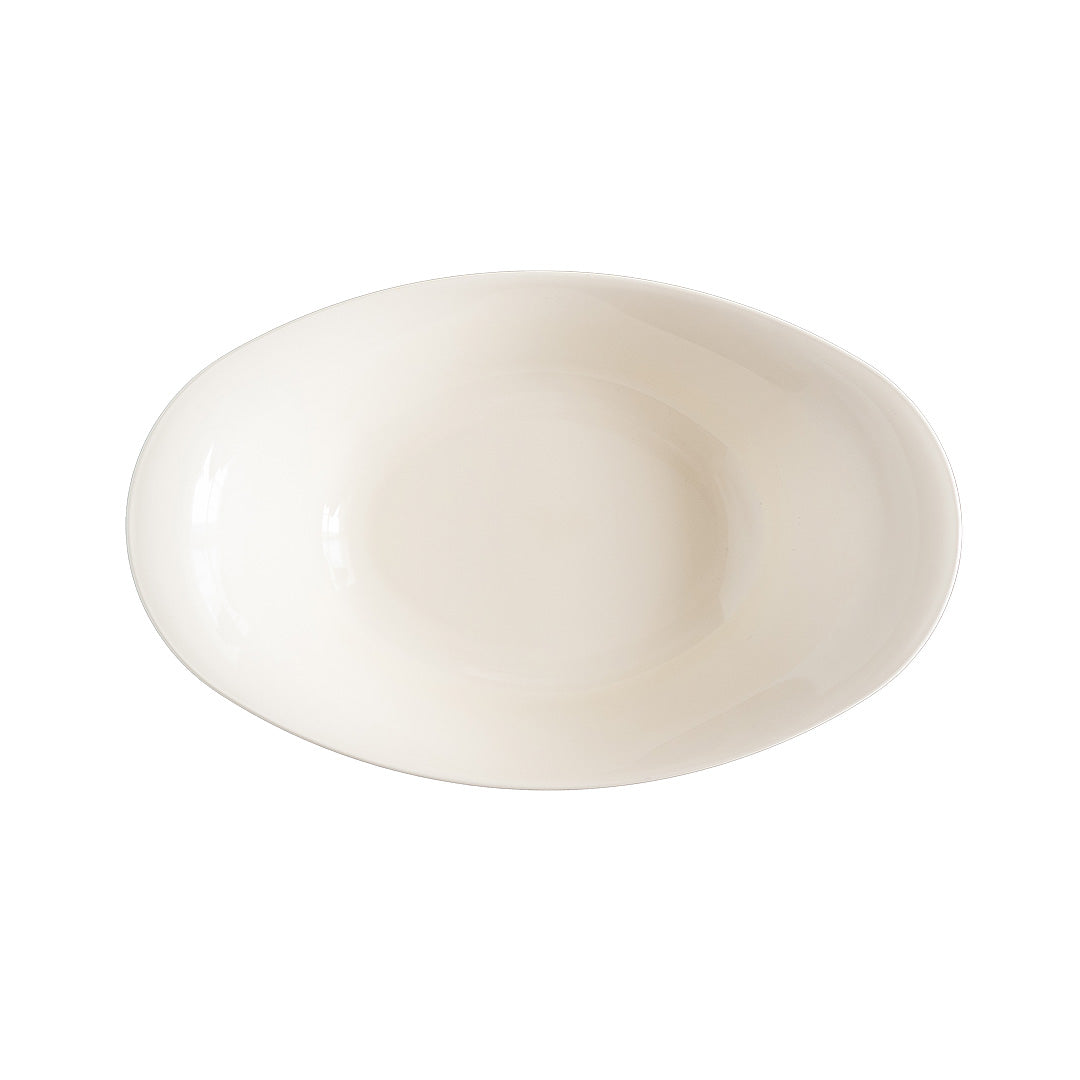 カレーはもちろん、パスタやオムライスに、また汁気の多い魚料理や肉料理、たっぷりのサラダにと盛り付けるメニューを選ばない、これ一枚で色々な使い方ができる便利な深型のオーバル皿です。