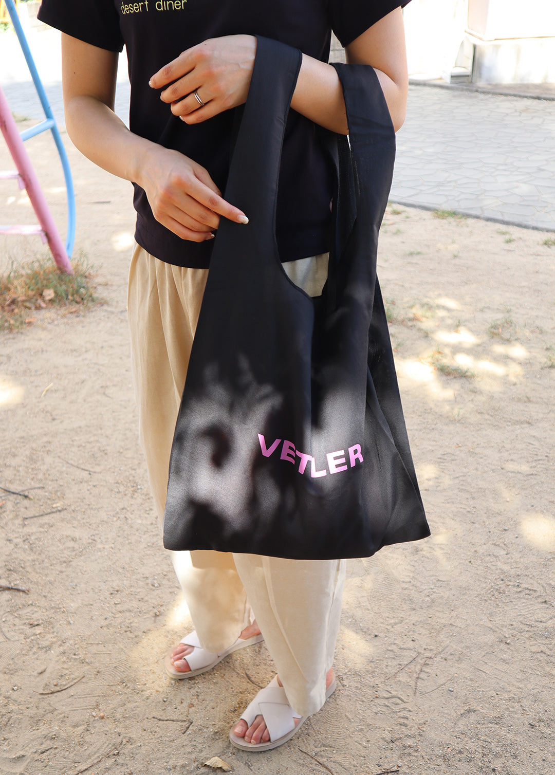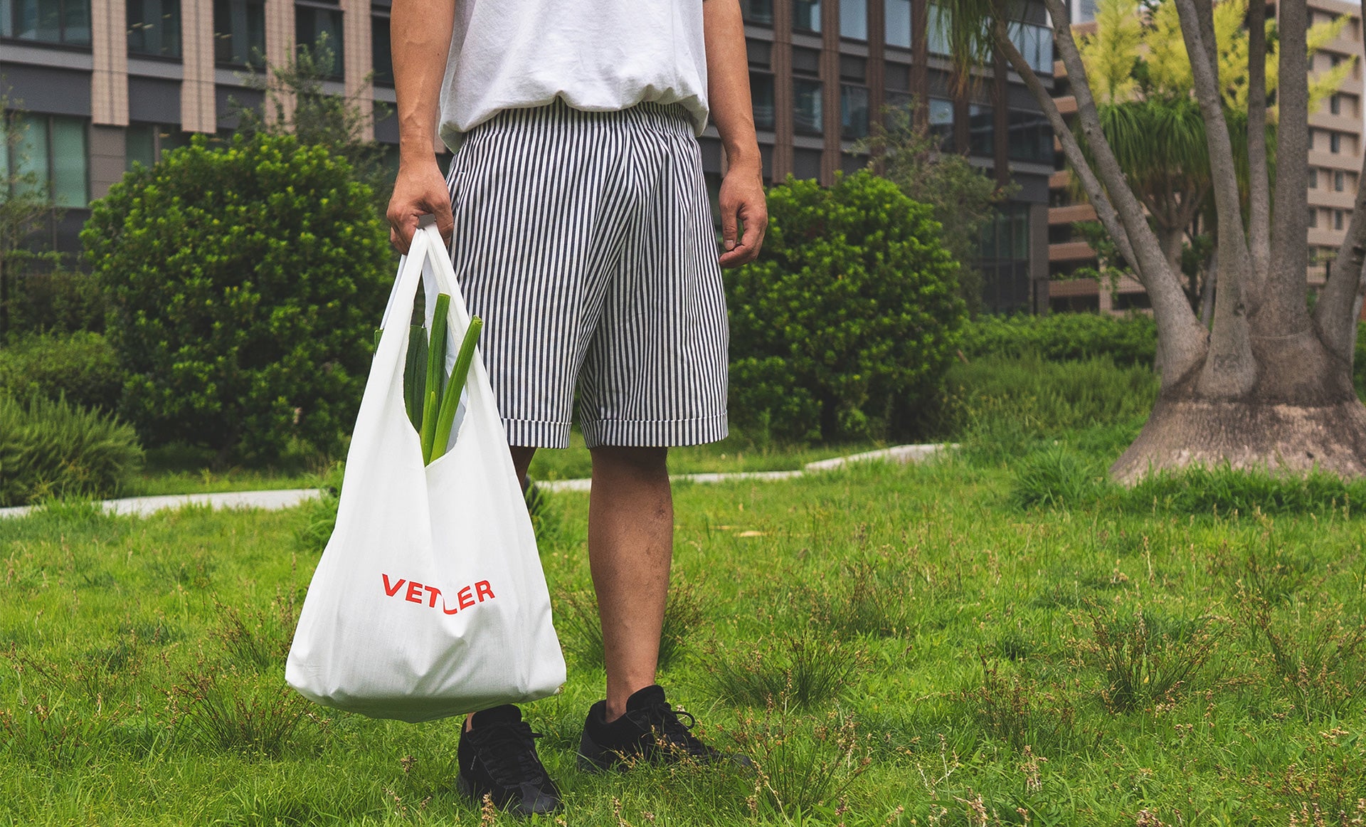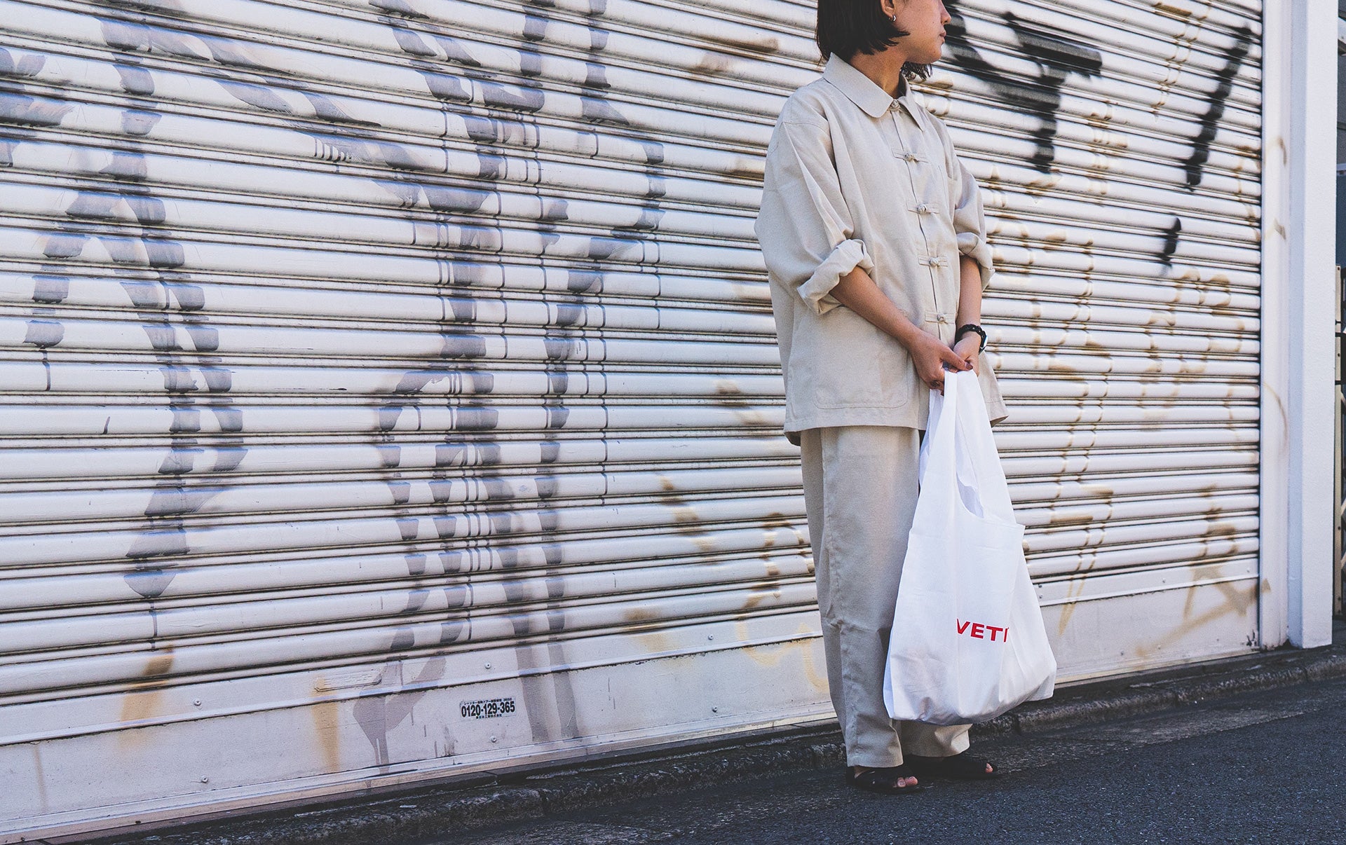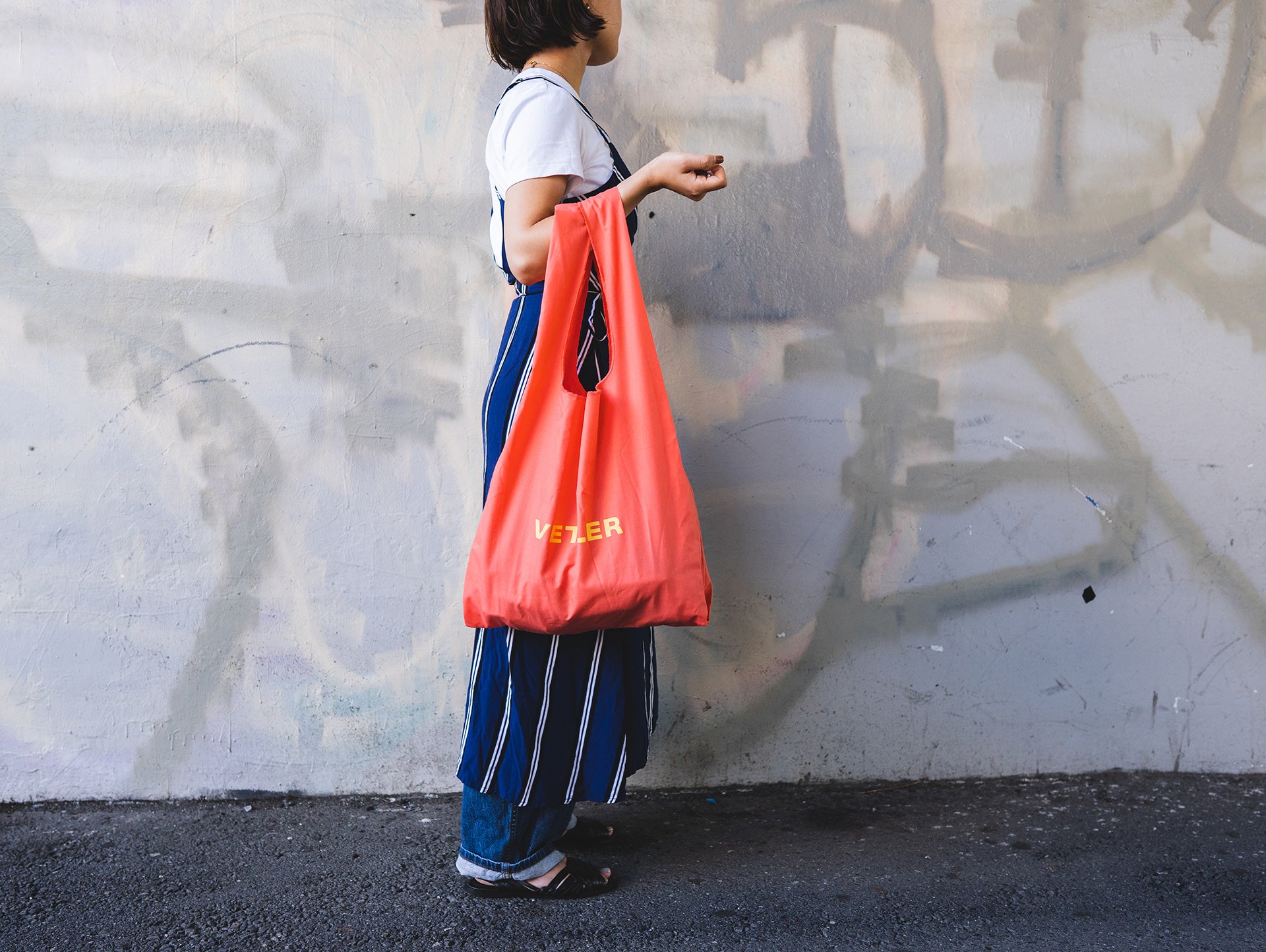 マルシェタイプのエコバッグ。こちらもトートタイプと同じくコンパクトに折りたたんで持ち歩きができます。またサイドに広めのマチがあるのでお弁当やお肉のパックなどをフラットな状態で運べるのもマルシェタイプのいいところ。ポップなプリントデザインは普段使いのバッグとしてもおすすめです。