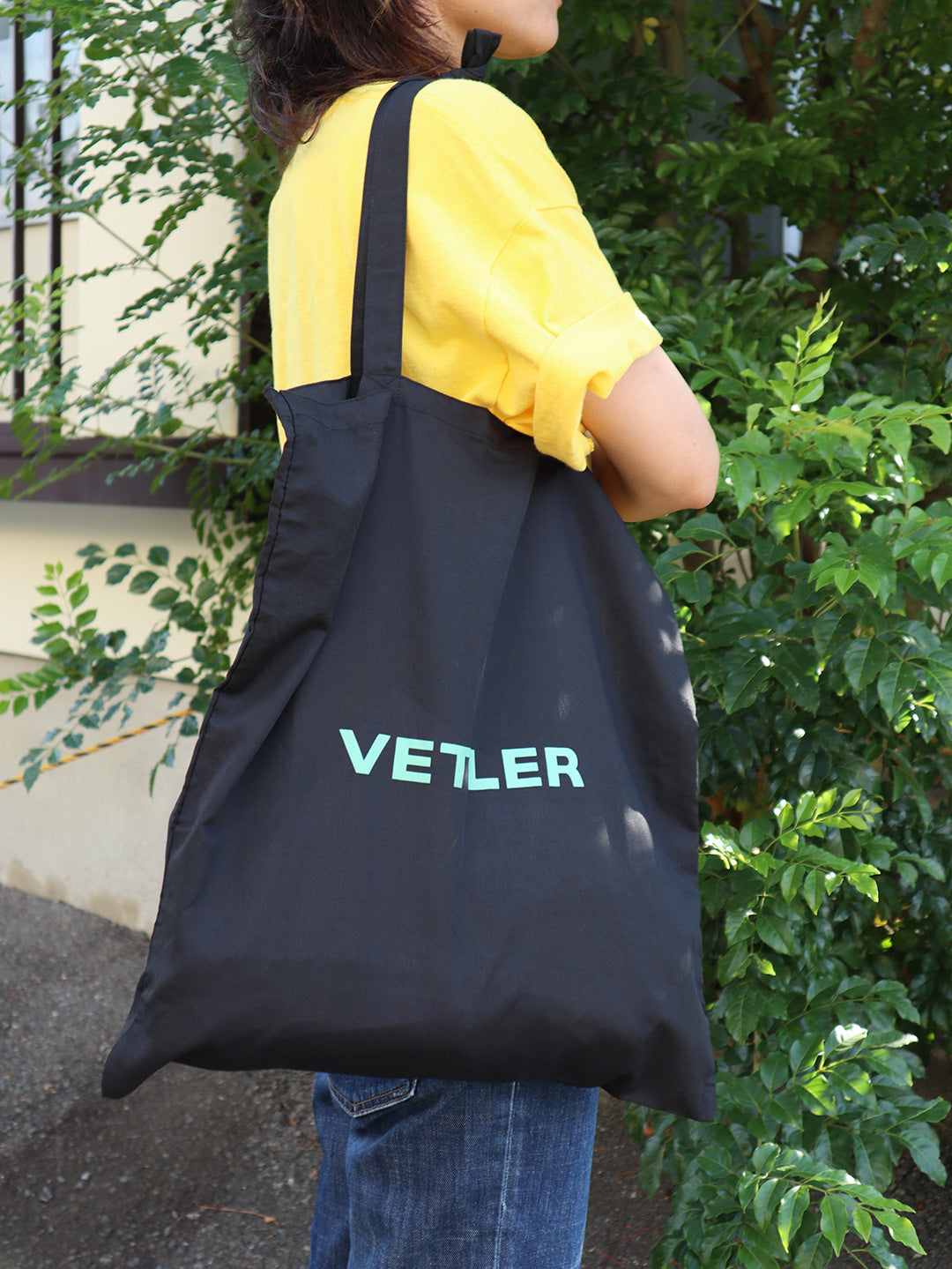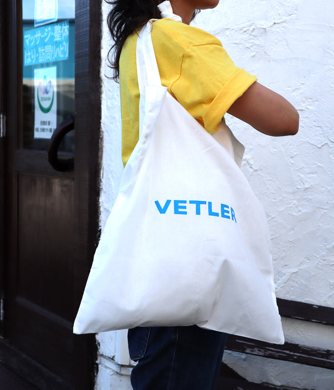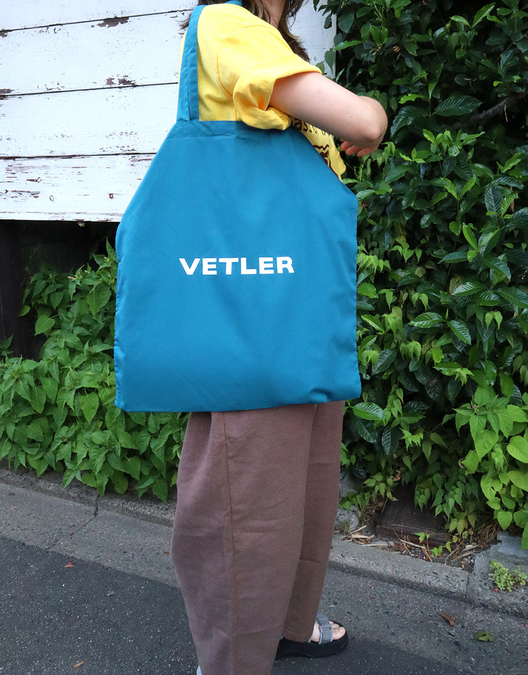 約55gの薄くて軽いトートタイプのエコバッグは小さく折り畳んで常に常備しておきたい。シンプルなプリントロゴは本体との色合わせがPOPな雰囲気で普段使いとしても◎
