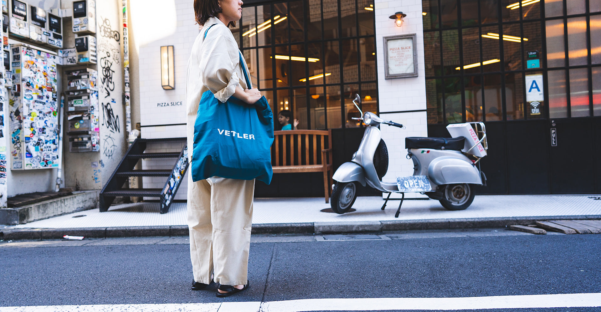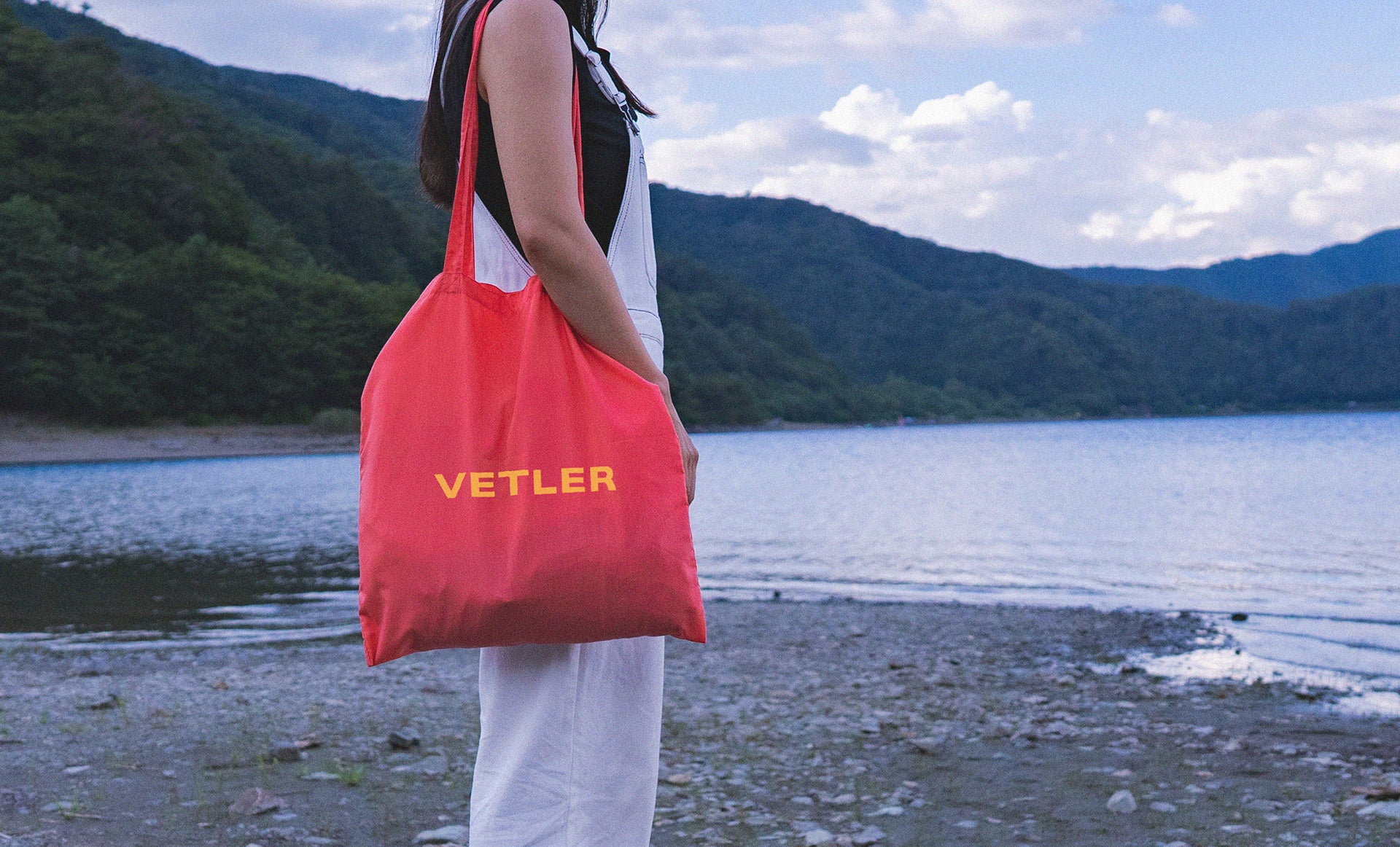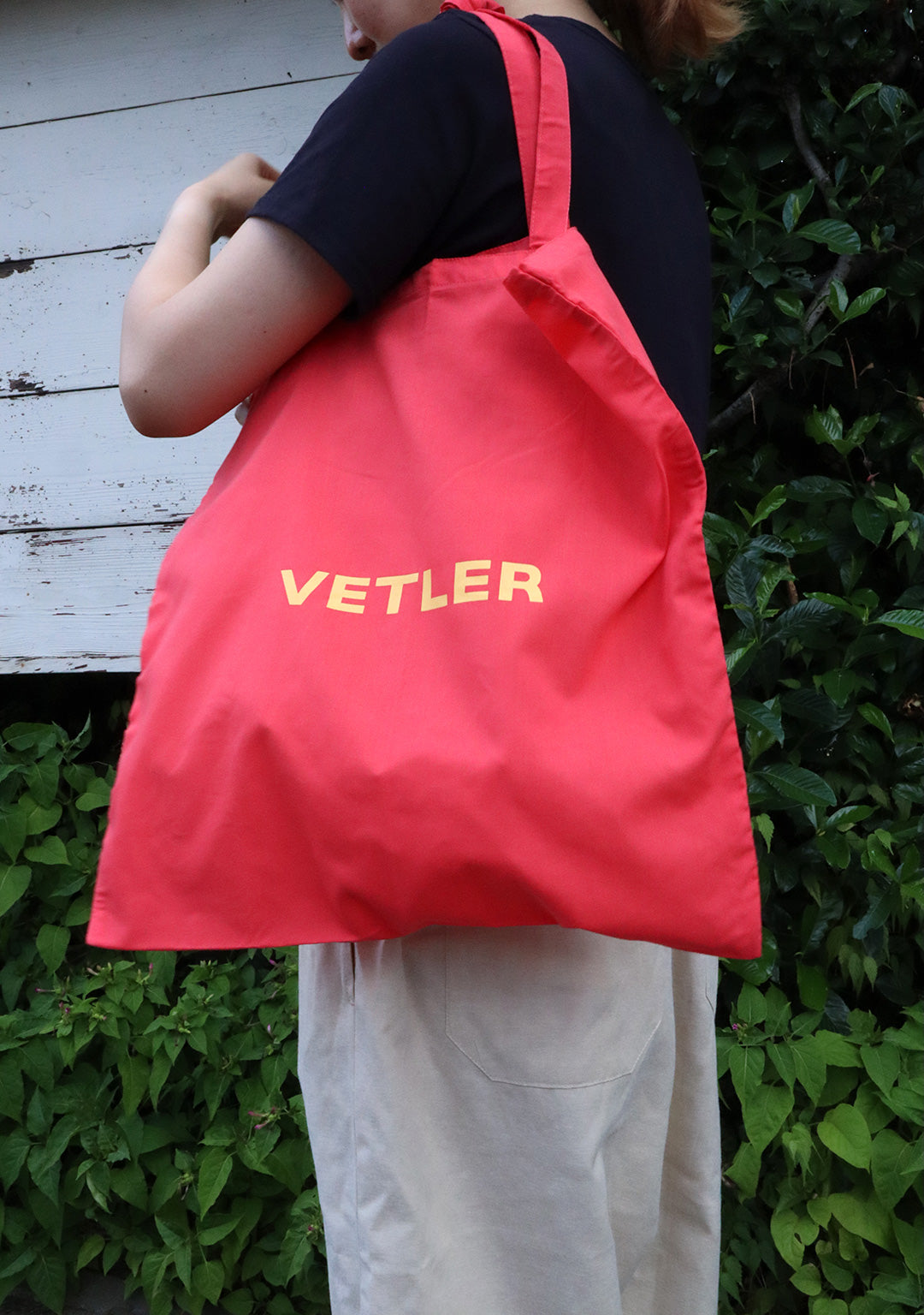 約55gの薄くて軽いトートタイプのエコバッグは小さく折り畳んで常に常備しておきたい。シンプルなプリントロゴは本体との色合わせがPOPな雰囲気で普段使いとしても◎