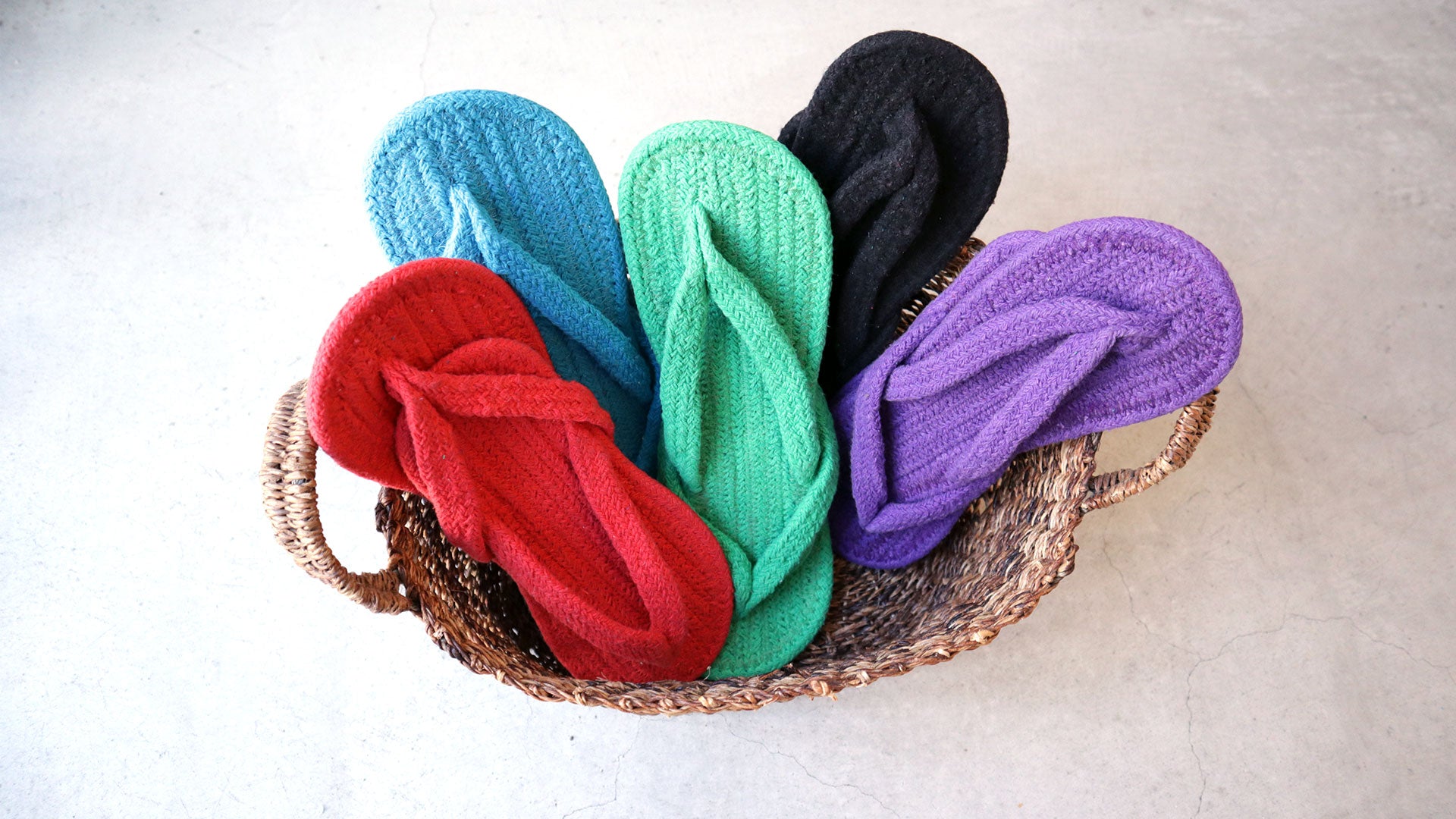 サラッとしたソフトな肌触りが特徴的なインド綿を使用したルームサンダルはインドの工場で一つ一つ丁寧に作られています。
