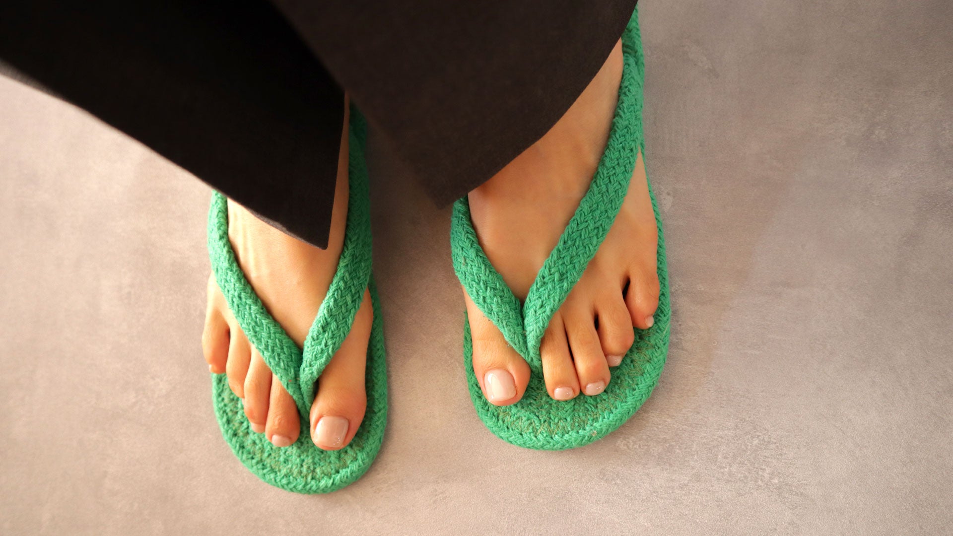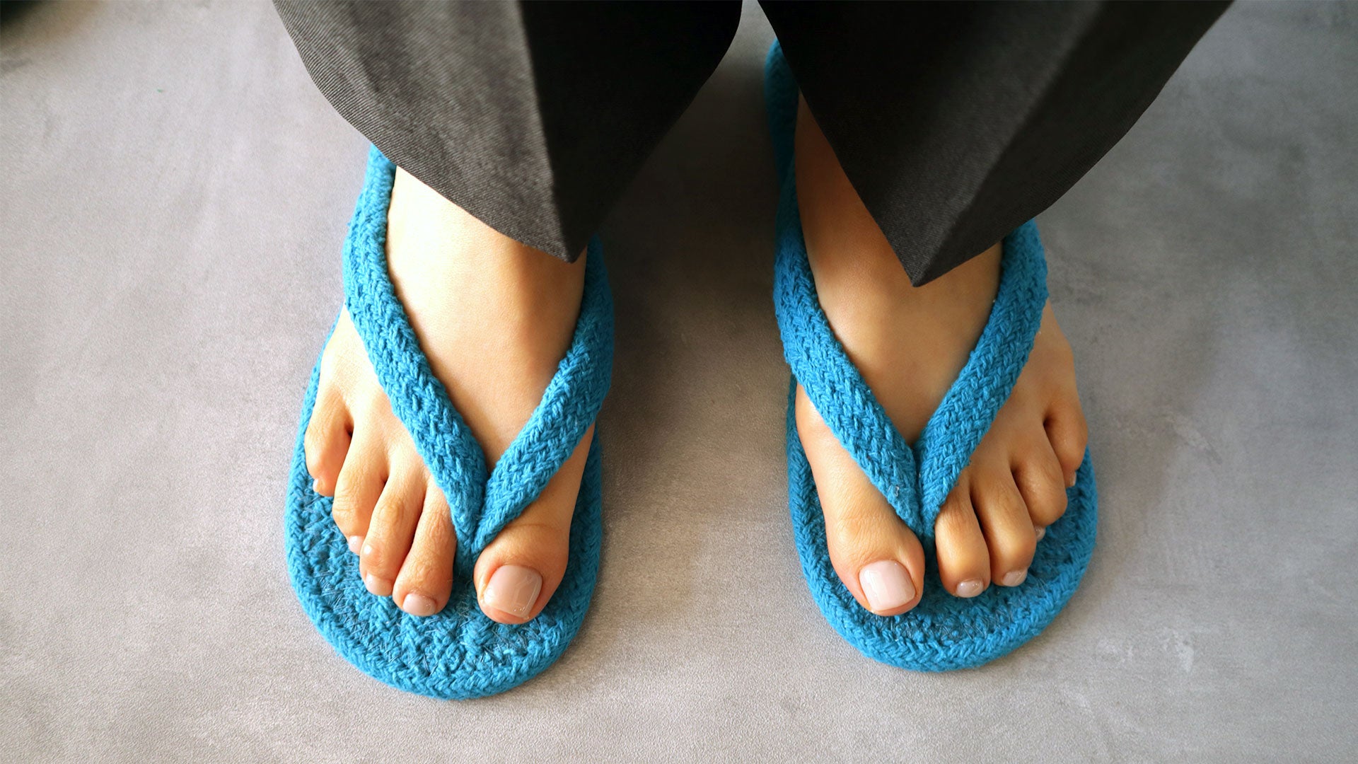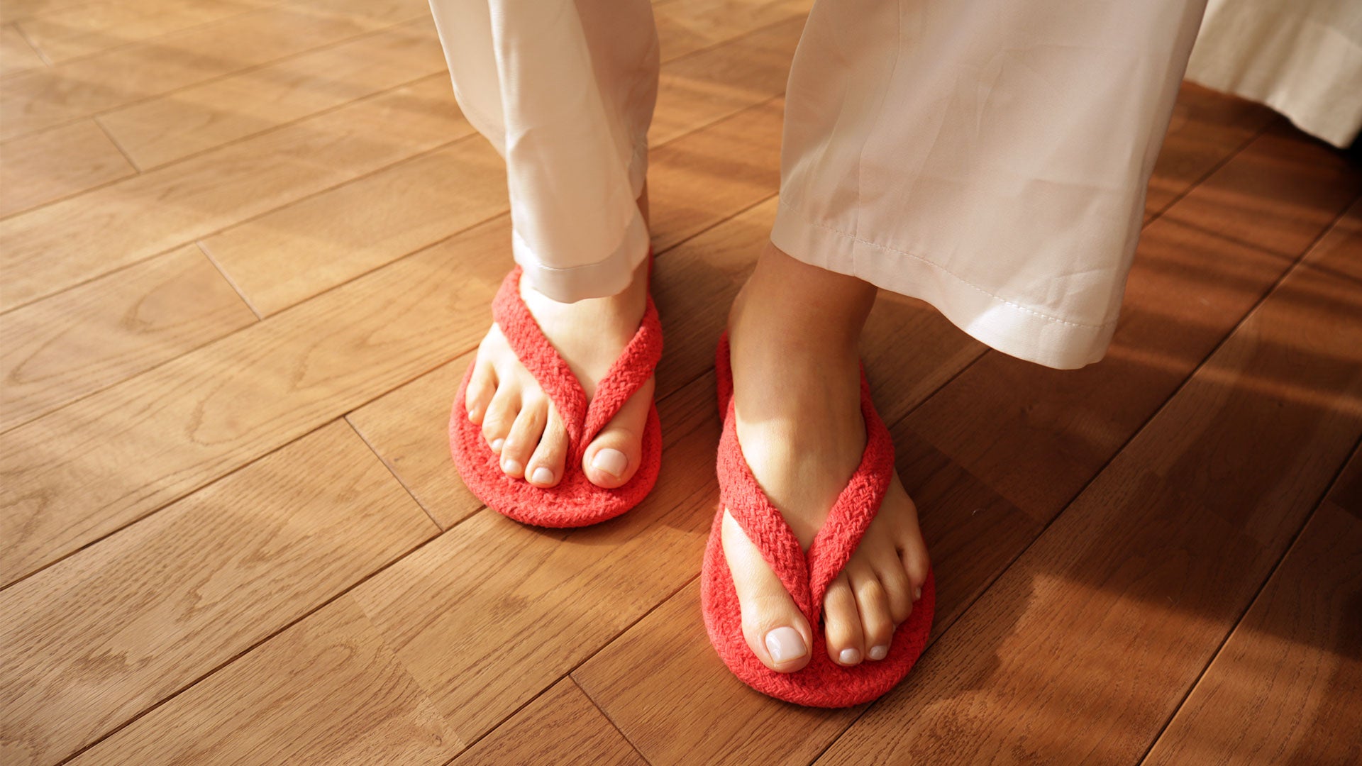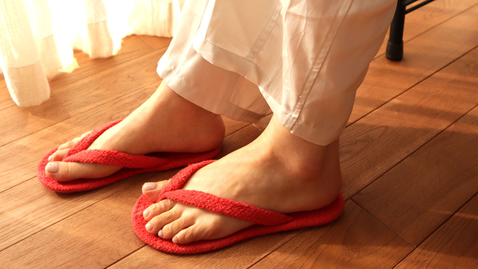 ・鼻緒付きスリッパは通気性がよく長時間履いていてもムレにくい