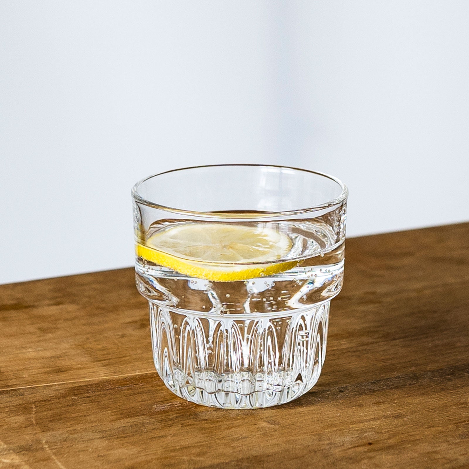 下部の凹凸が美しい、レトロな形状のスタッキンググラスは、重ね収納が可能で、家族分揃えても省スペース。ロックグラスとしてはもちろん、来客時のお茶、カクテルやデザートグラスとしてもお使いいただけます。